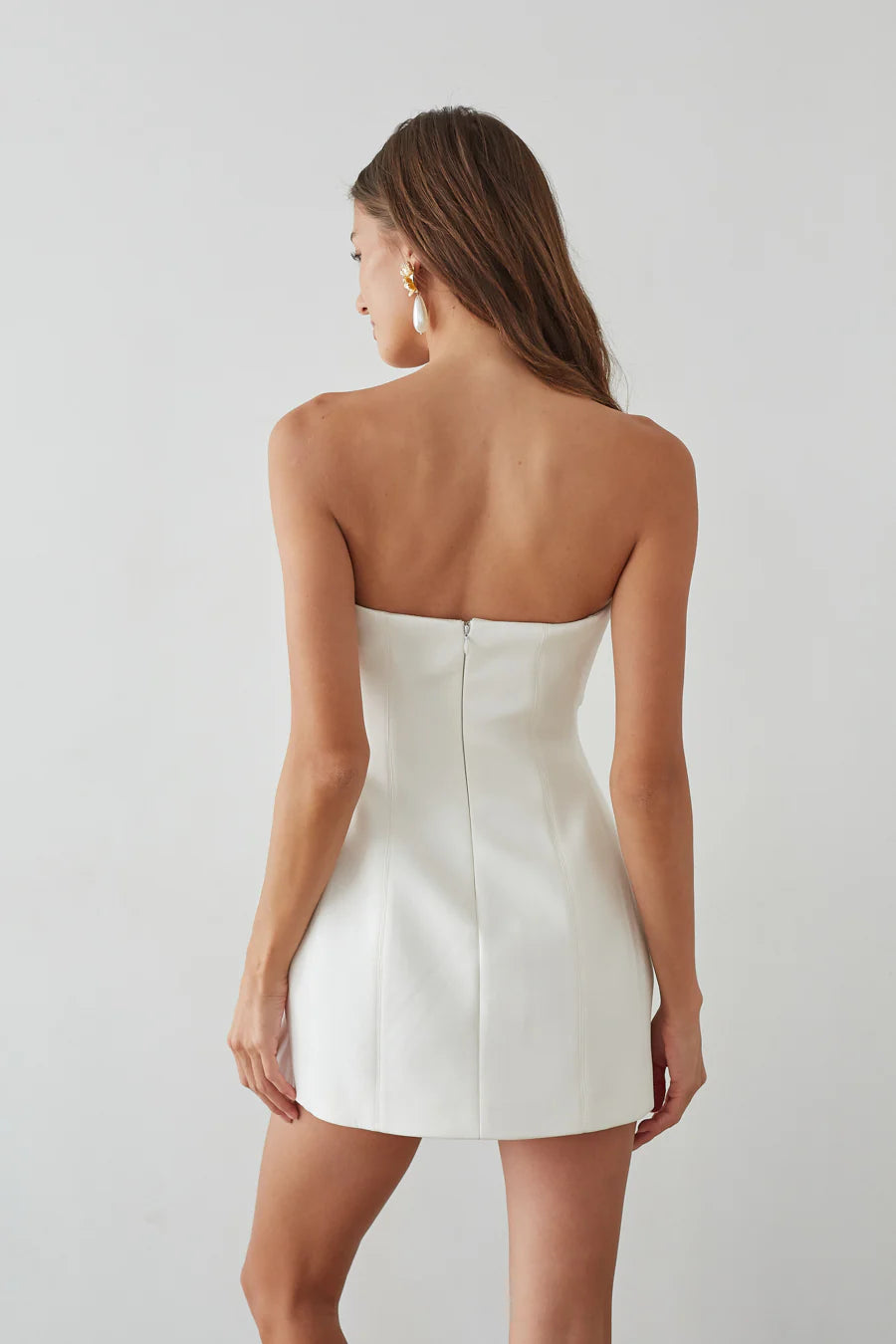 Be strikingly unique in the all new Alix Strapless Twist Front Bubble Mini Dress. This white mini dress features a strapless neckline, twist front detail, and flattering bubble fit and flare silhouette. Available in Pure White; style with a pair of to complete the look. If you love the Alix you'll love the