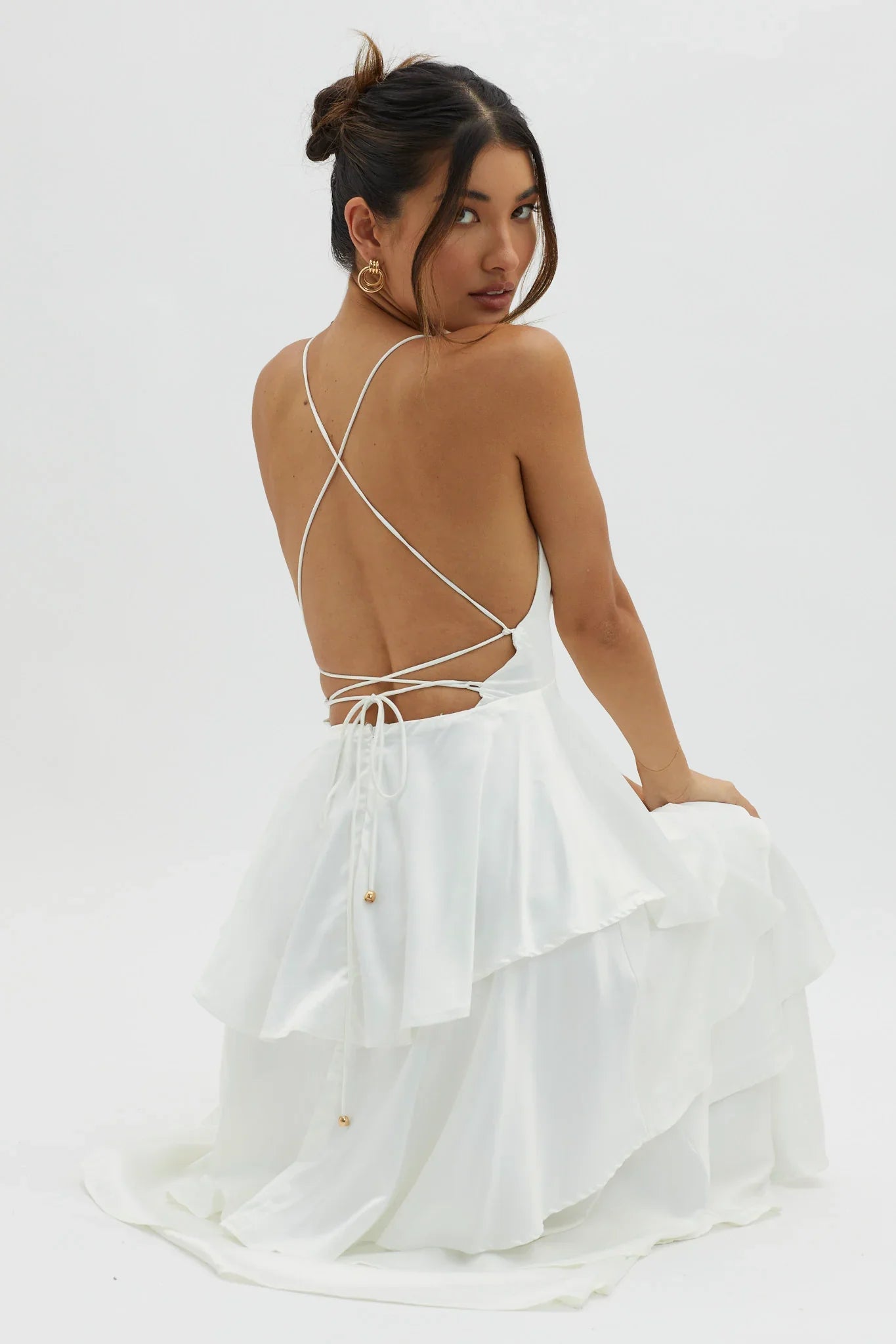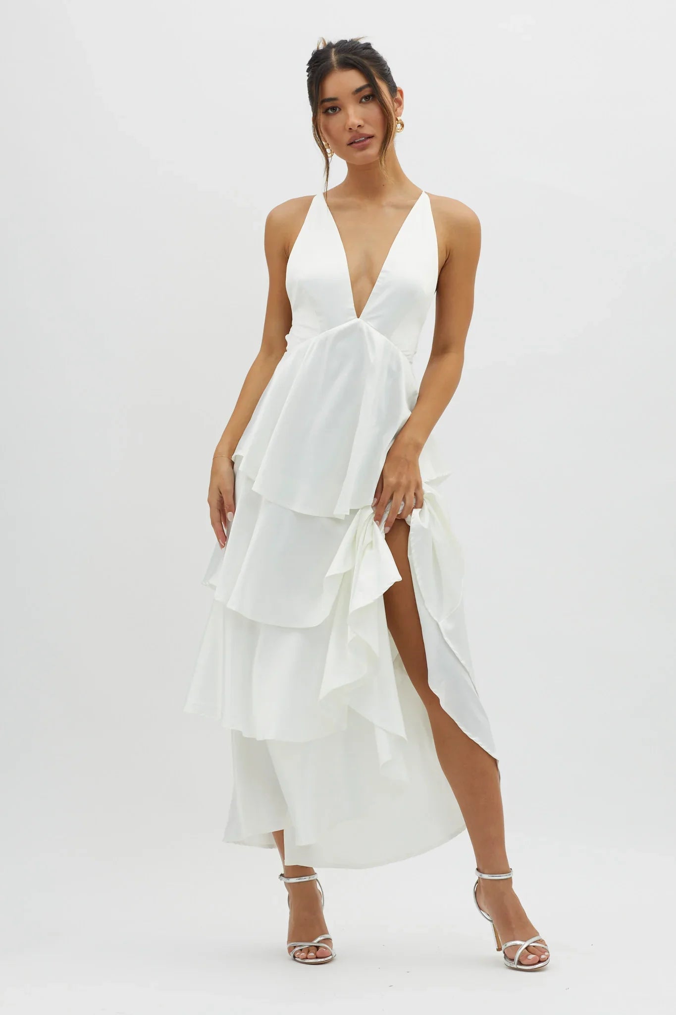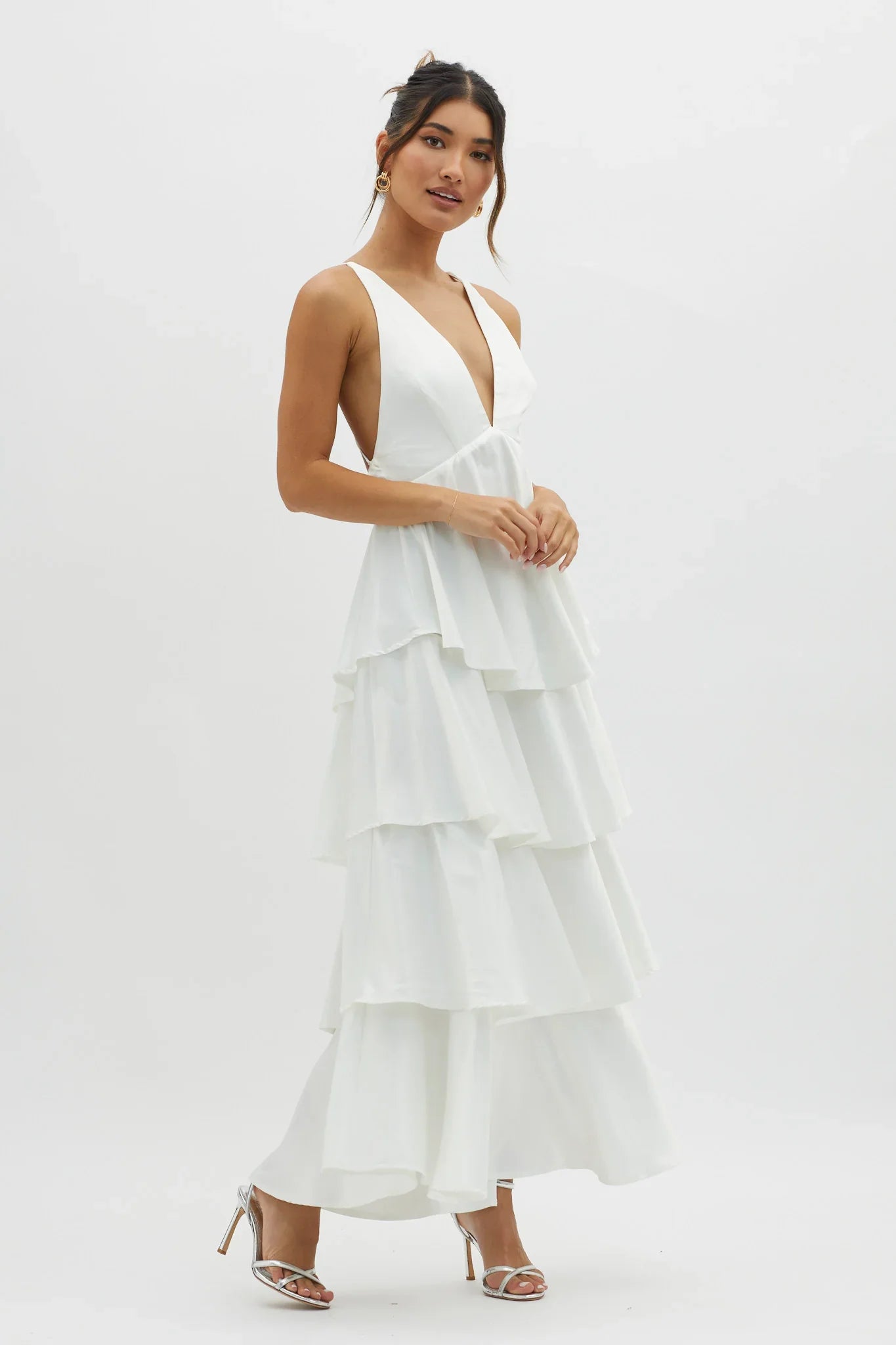 You will be flooded with compliments in our gorgeous Auguste midi dress. Featuring a plunging neckline and tiered frill detail. Wear it to your bridal shower or a special birthday celebration. Team it with nude heels and a clutch for a look that'll sweep them off their feet.
