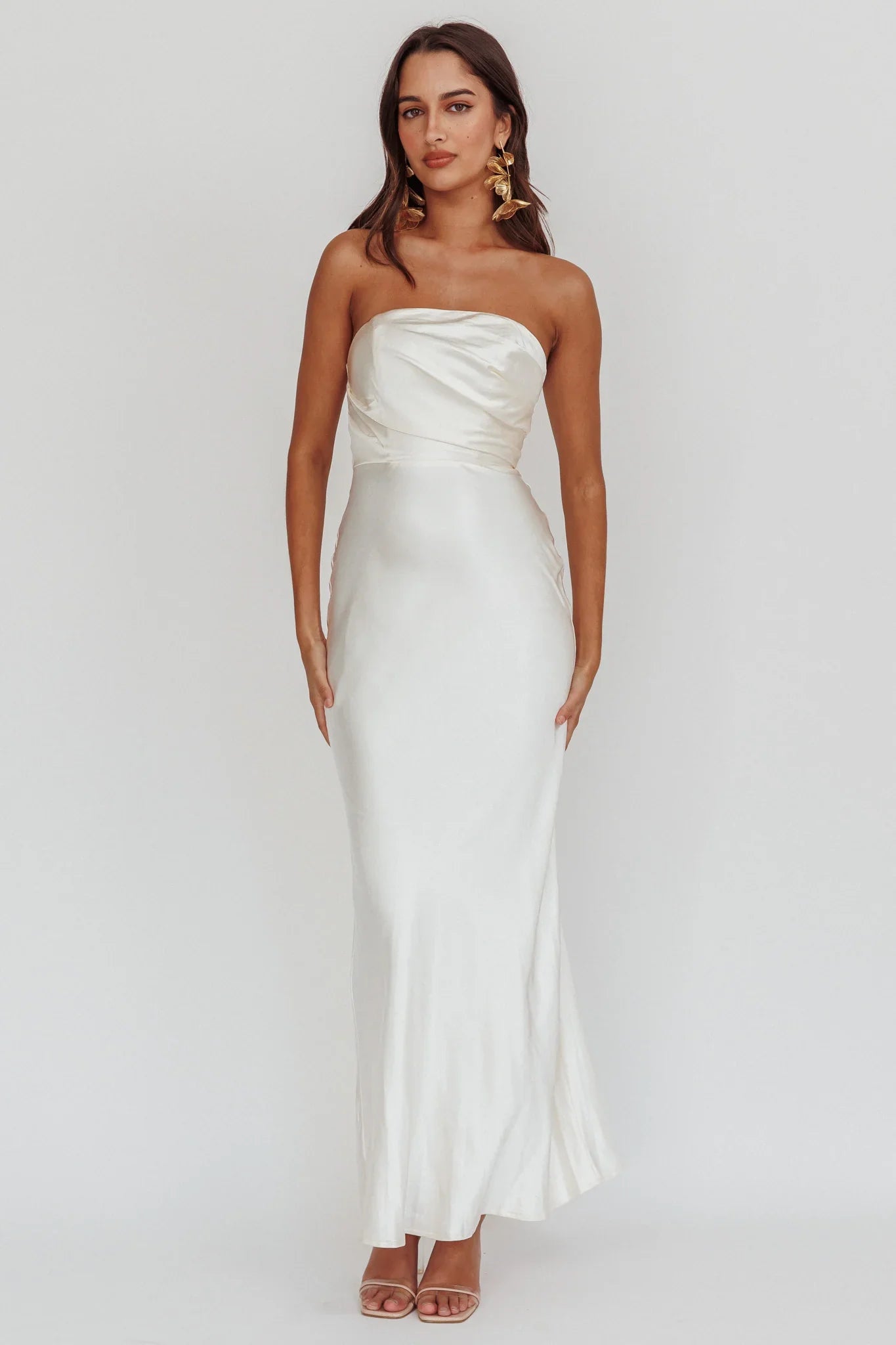Make your grand entrance in our stunning City Of Stars maxi dress. Featuring a strapless design and soft, satin fabric, it's perfect for your big day or a special gala event. Team it with nude heels and a clutch for an unforgettable look.