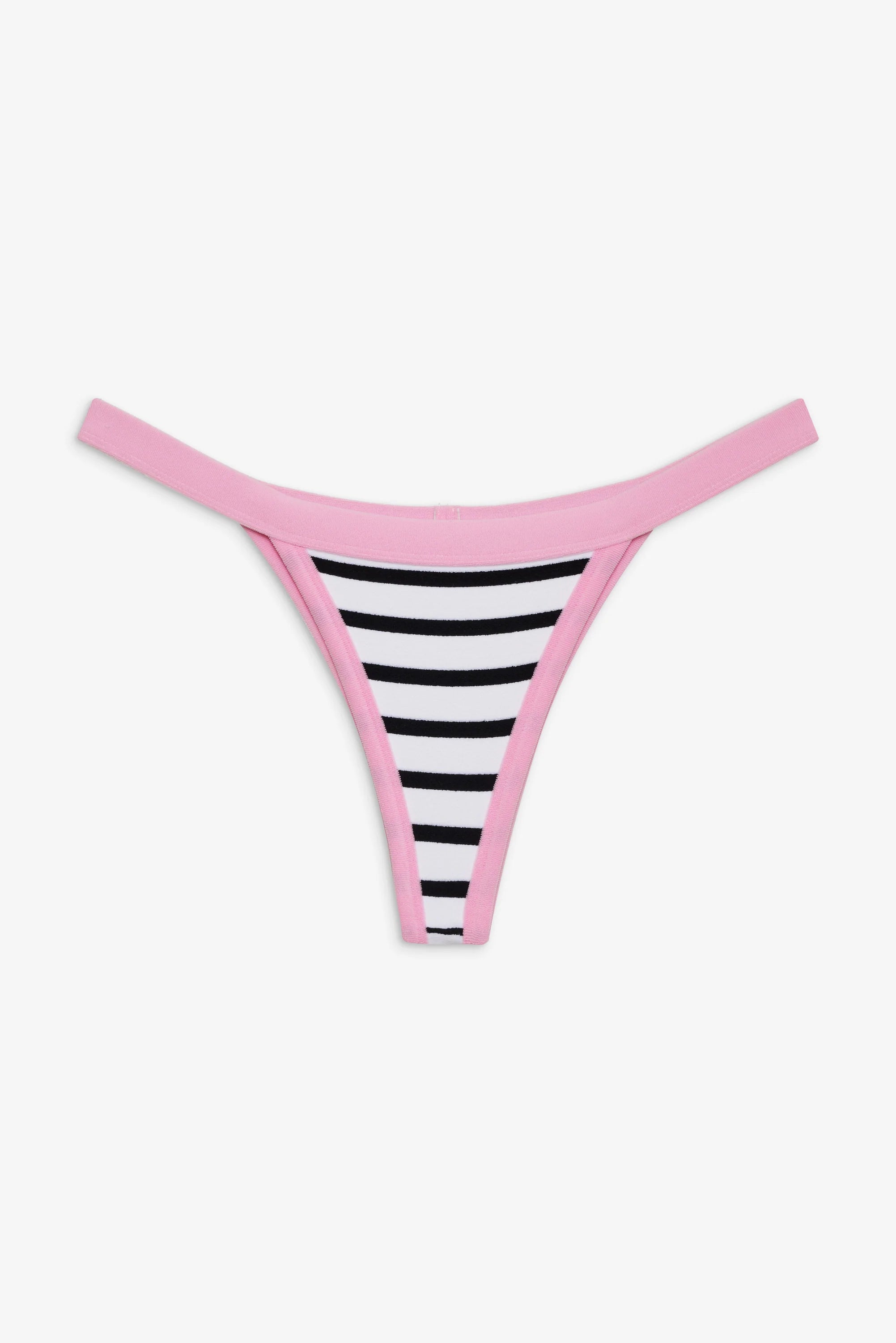 This classic bikini bottom is an original Frankies Bikinis favorite. The Cole bikini bottom features a new Vintage Stripe pattern and an elasticated waistband designed to sit low on the hips.