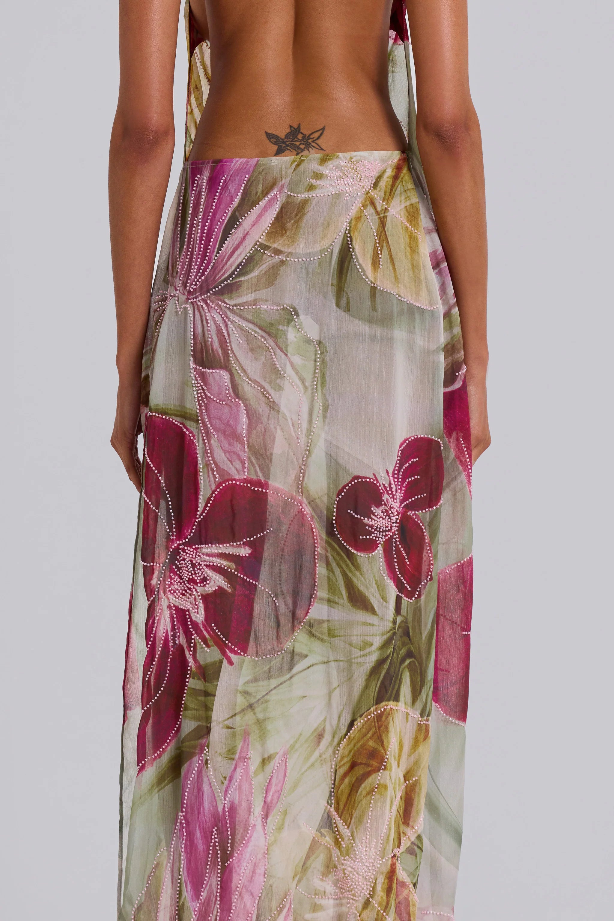 Dahlia Hand-Beaded Backless Chiffon Maxi Dress
