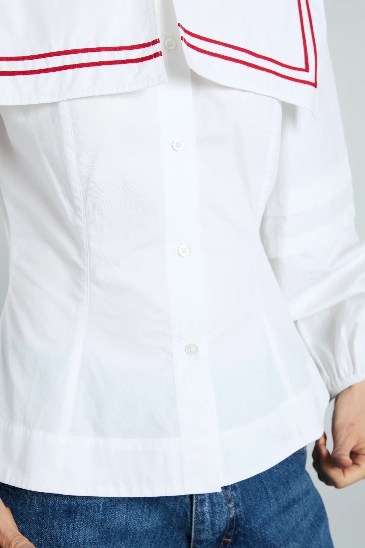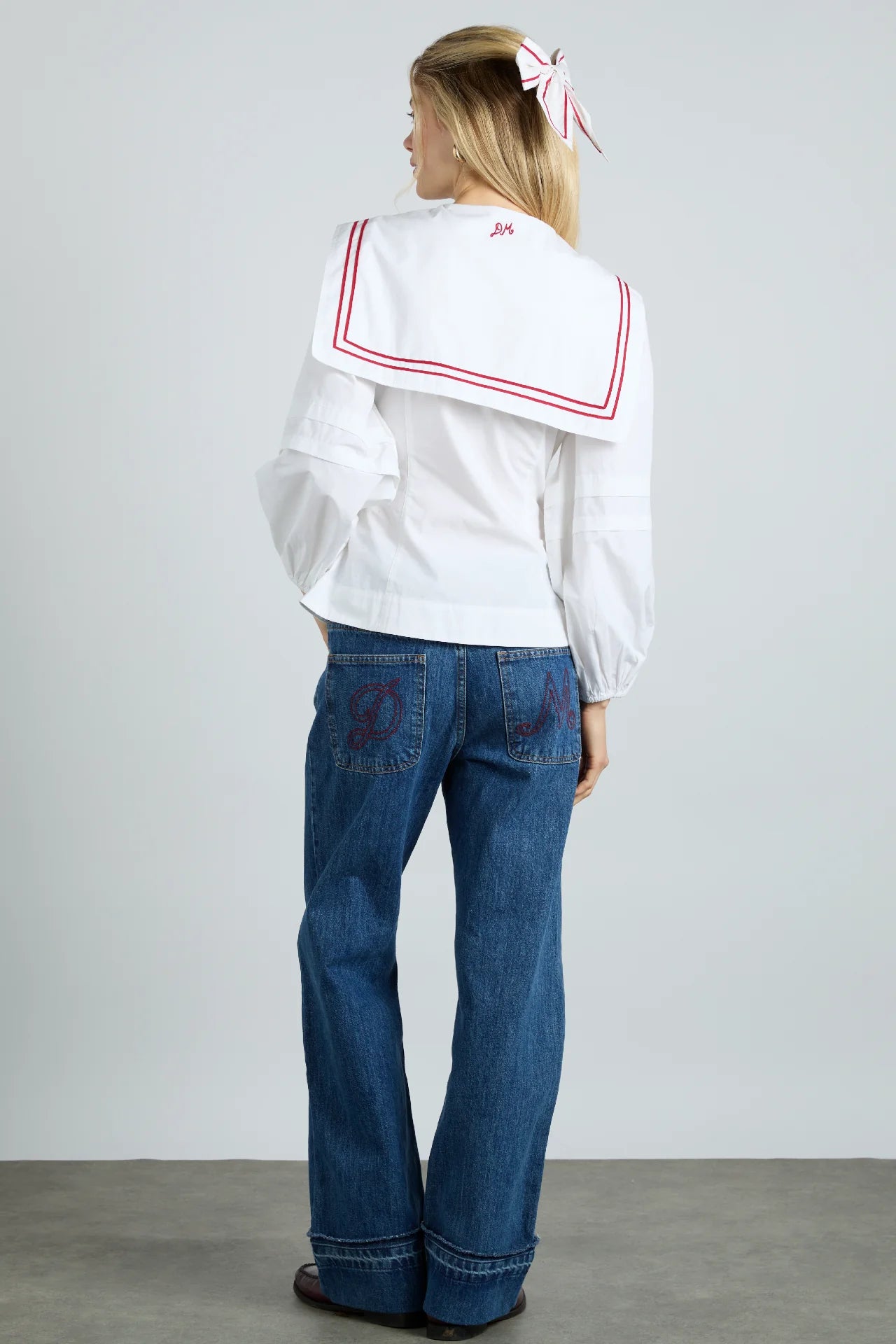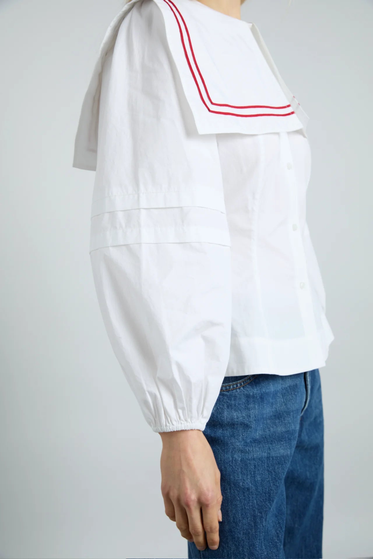 Our Elise blouse offers classic. nautical charm with its button-down front and fitted cut. Made from organic cotton. it's a clean. crisp statement.