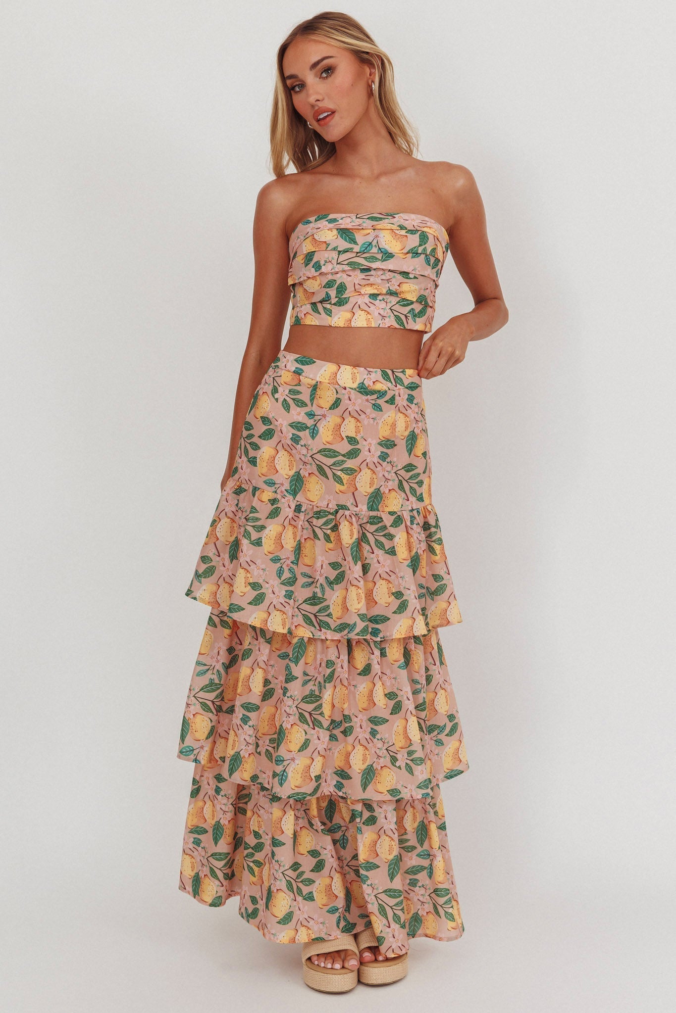 Hello, gorgeous! You will steal the show in our pretty Ezmeralda crop top. It features a strapless design and pintuck pleat detail in the front. It's perfect for Friday night cocktails with your girls teamed with its matching crop top and straw wedges for a super cute look.
