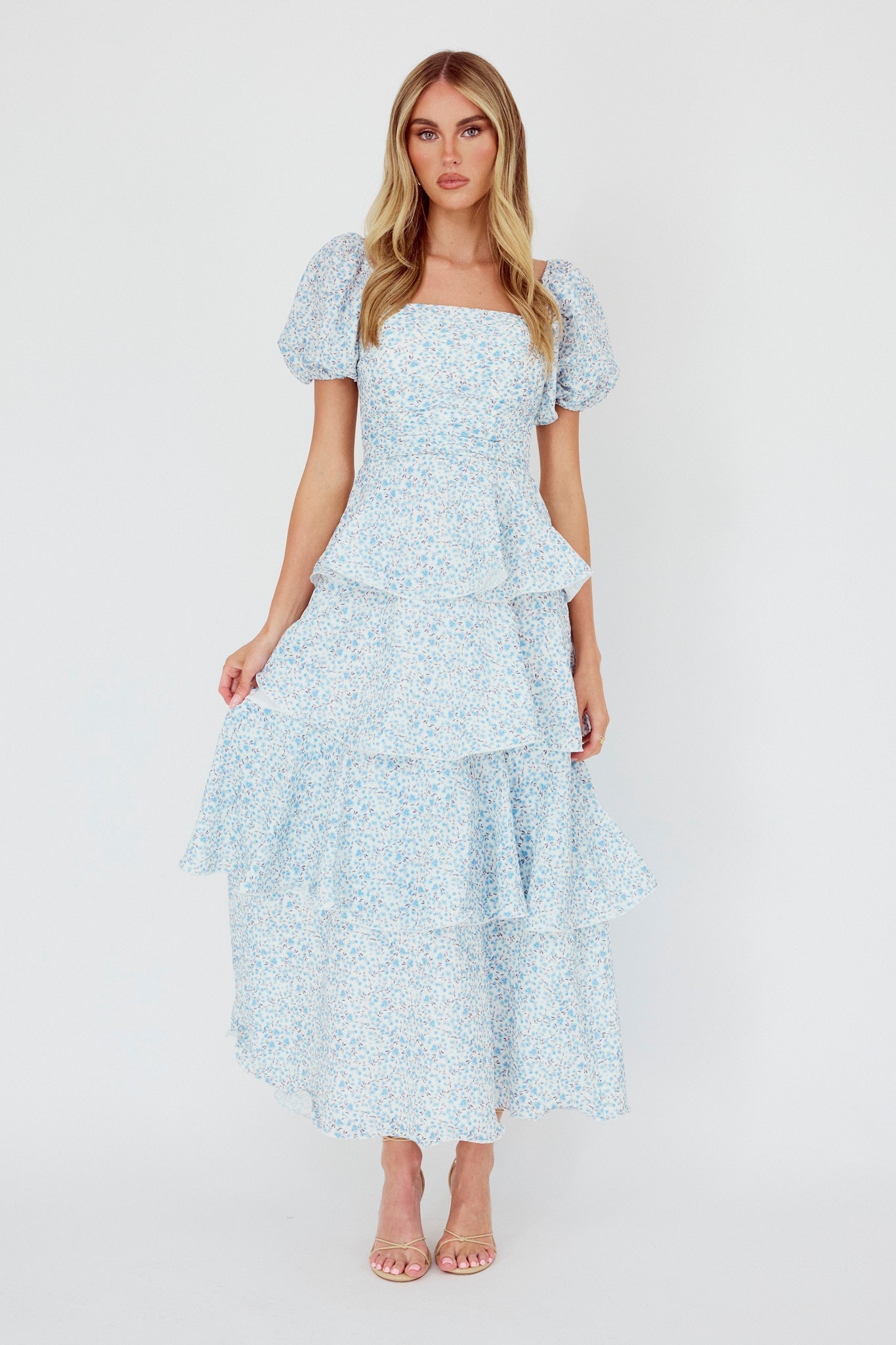 Make an entrance in our stunning Giavana maxi dress. It featured a puff sleeve design and tiered layers throughout. It's perfect for a bridal shower or a special event. Team it with strappy, nude heels and a clutch for a look that is unforgettable.
