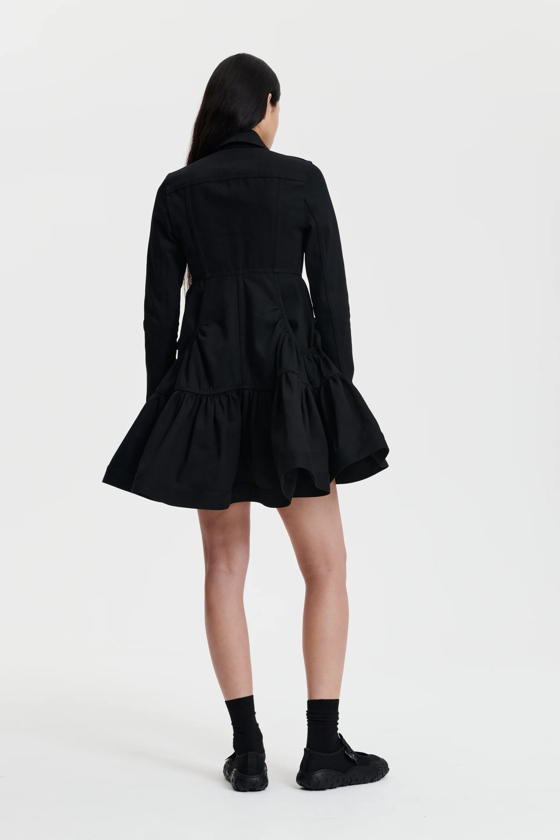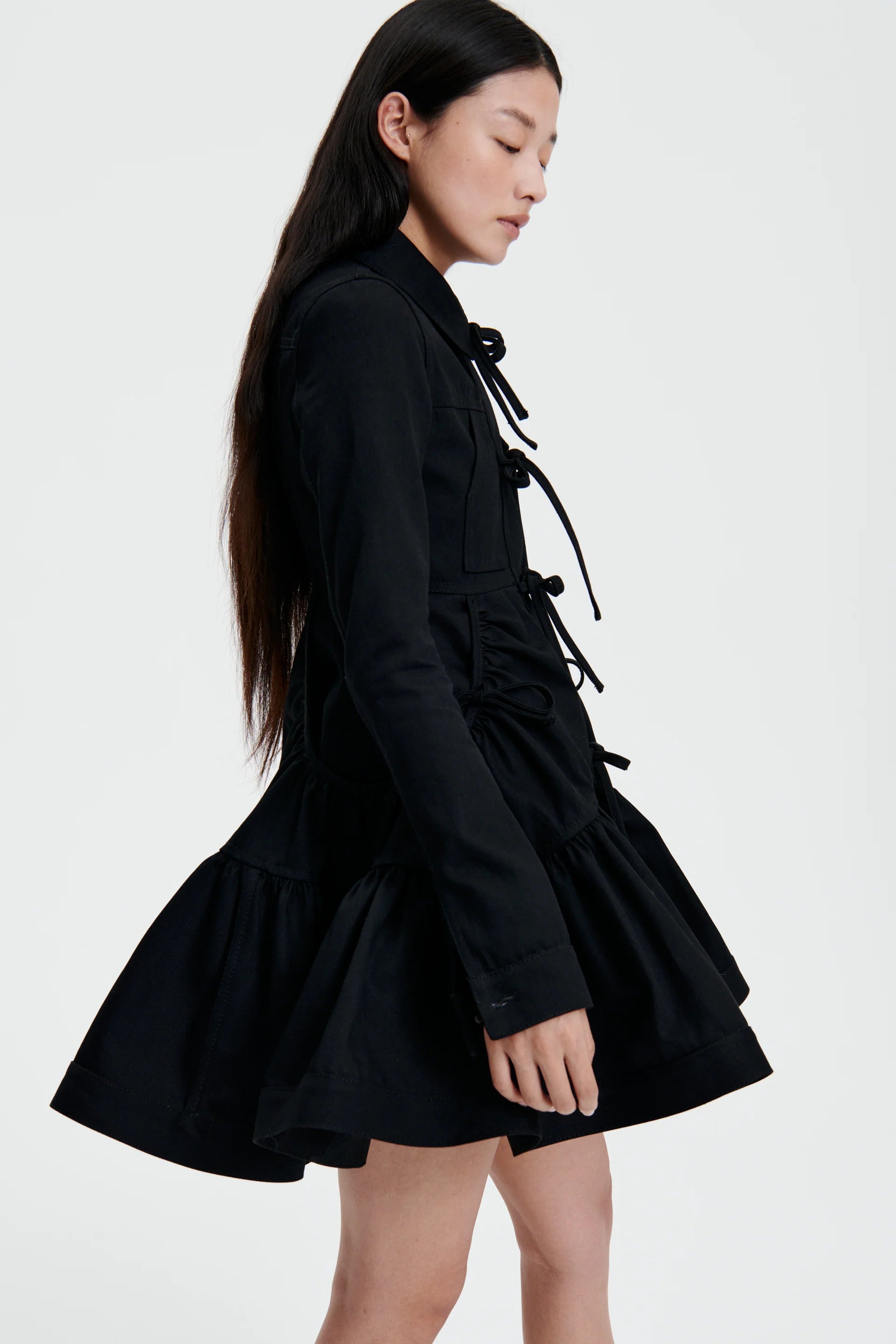 Drawing on couture traditions to dream up a denim dress that could only be Cecilie Bahnsenís. Crafted from Japanese denim in 100% cotton. the Gill dress blends elements of Scandinavian practicality with whimsical romance. The tiered silhouette features adjustable pockets to create volume. An extension of the growing universe meant to be worn over cherished pieces or stand alone. Complete with ribbon fastenings. falling above the knee.