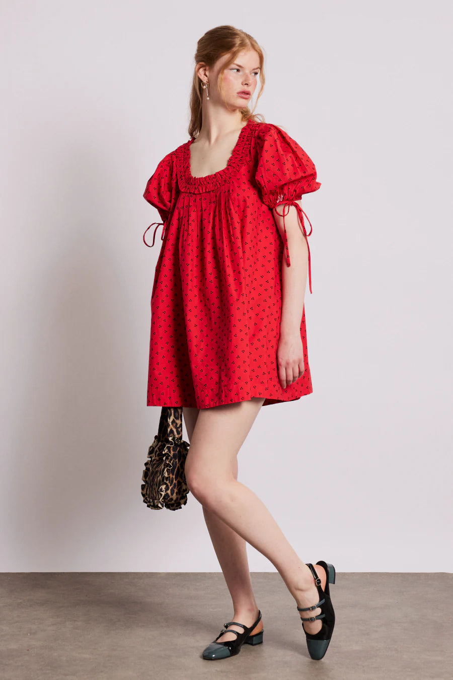 What do we love most about our puff sleeved Jemima mini dress? It's either the contemporary swing dress fit or the cute cherry print - we're struggling to decide.