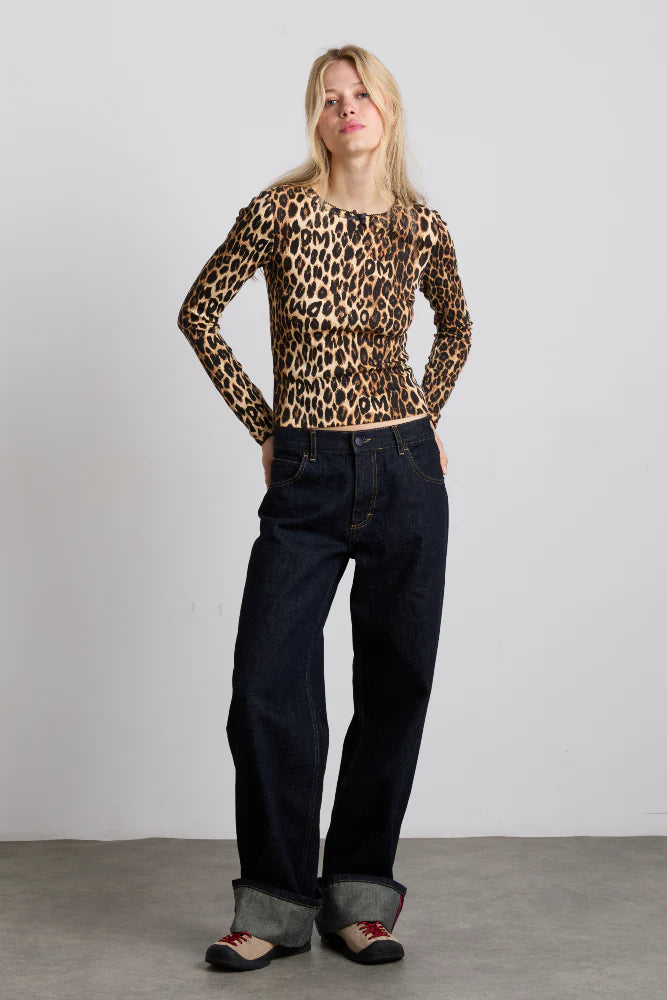 The perfect piece for statement layering. our Lua pointelle long-sleeved top in signature leopard print is designed to elevate every day dressing.