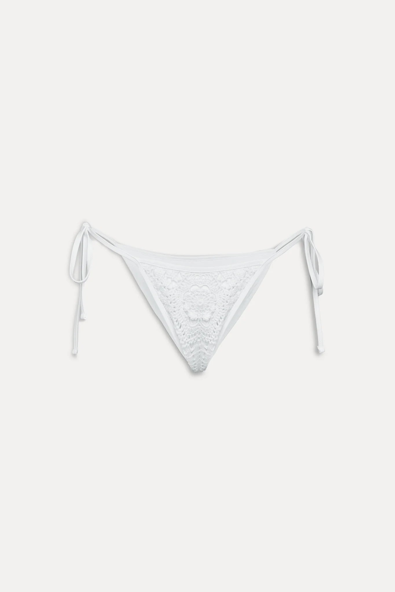 Turn heads in the eye-catching Mackenzie bikini bottom. This crochet bikini bottom is lined in soft swim fabric.
