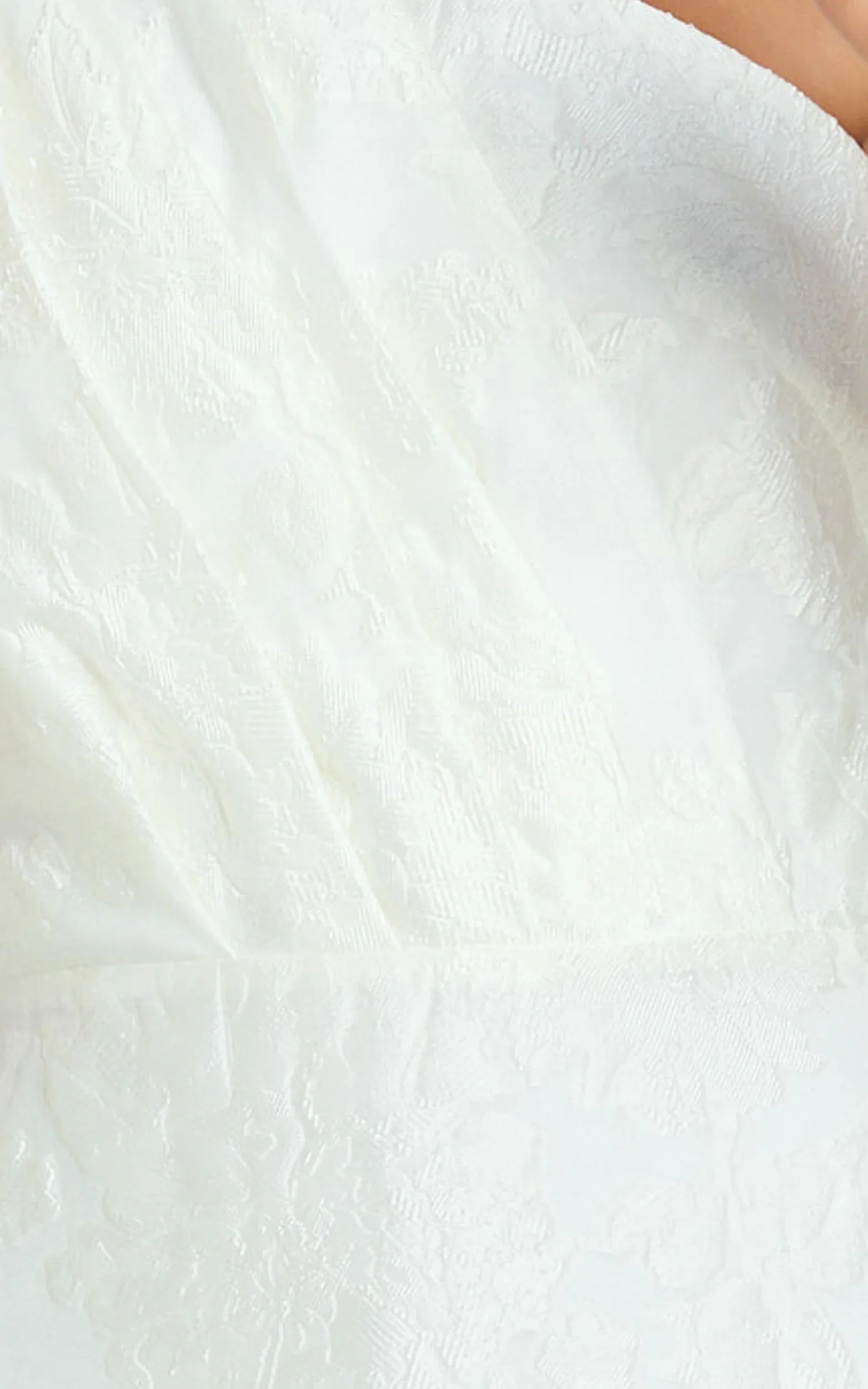 This one-shoulder beauty is an absolute vision in white, featuring delicate pleated tiers that flow effortlessly into a Haute Couture-inspired silhouette. Striking a perfect balance between minimalist chic and runway-ready glam, it's ideal for weddings, cocktail evenings, or stylish summer soirées.