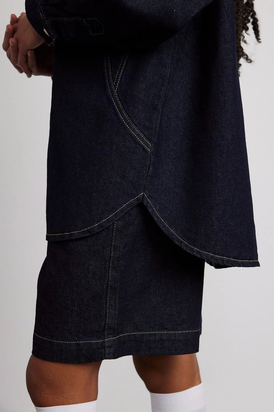 The Nova jorts are our denim shorts available in our new indigo wash denim. Featuring a high waist. wide leg fit and contrast stitching.