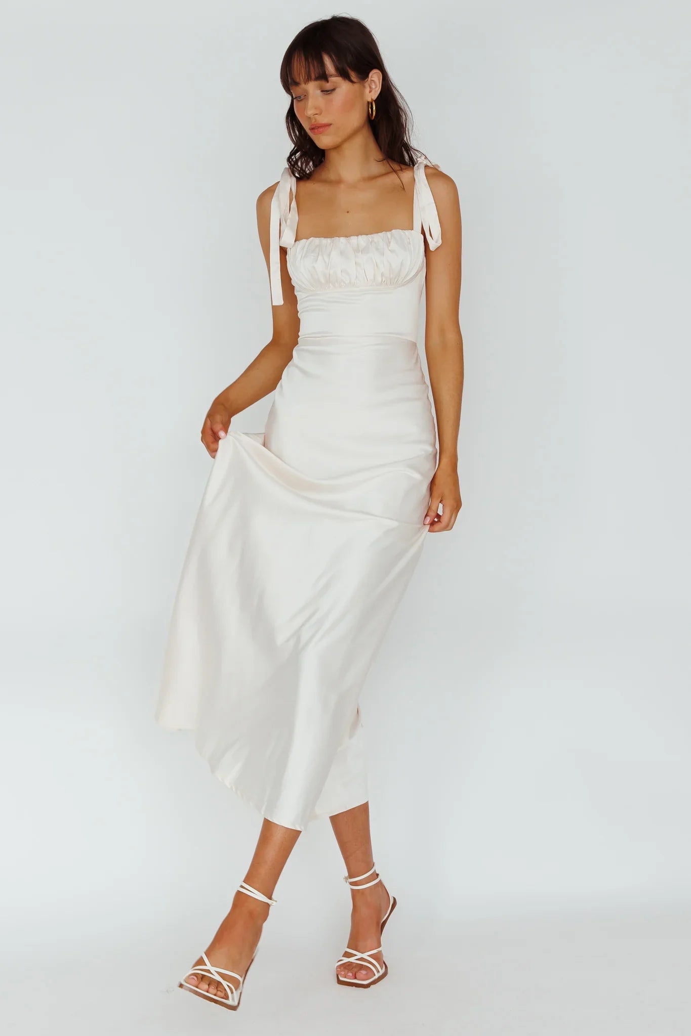 Make an entrance in our gorgeous Pennelope maxi dress. Featuring pretty, tied shoulders and gathering in the bust, it's perfect for bridal events or prom. Team it with diamanted heels and a satin clutch for a look that's fit for a princess.