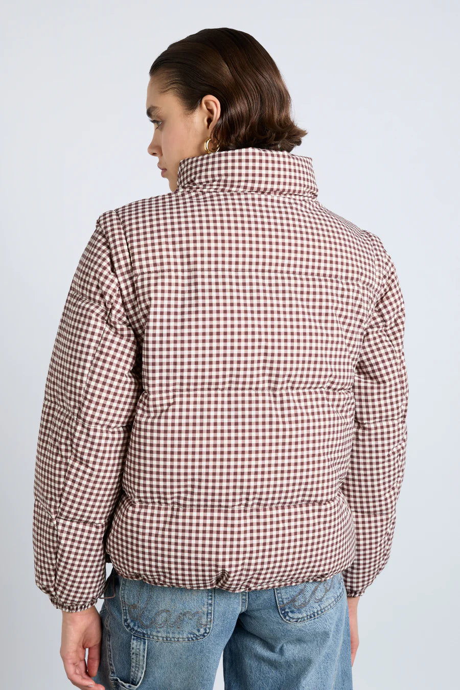 Prepare for autumn with our Jennifer check puffer. featuring removable sleeves and made using recycled polyester.