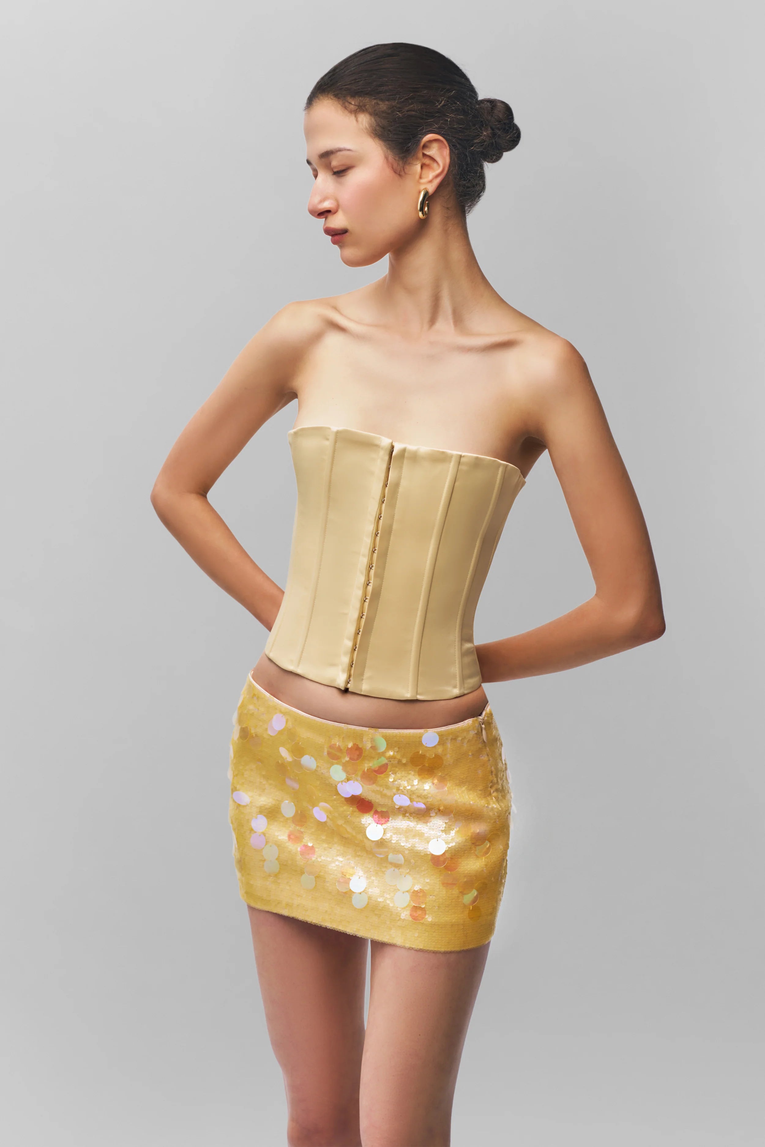 Have you met our Satin Corset? A true closet hero. it features everything we love about a classic corset: boned structure. boudoir-style hook-and-eye closures and a lattice back. More than an occasion top. you can wear it over and under your favorite pieces.