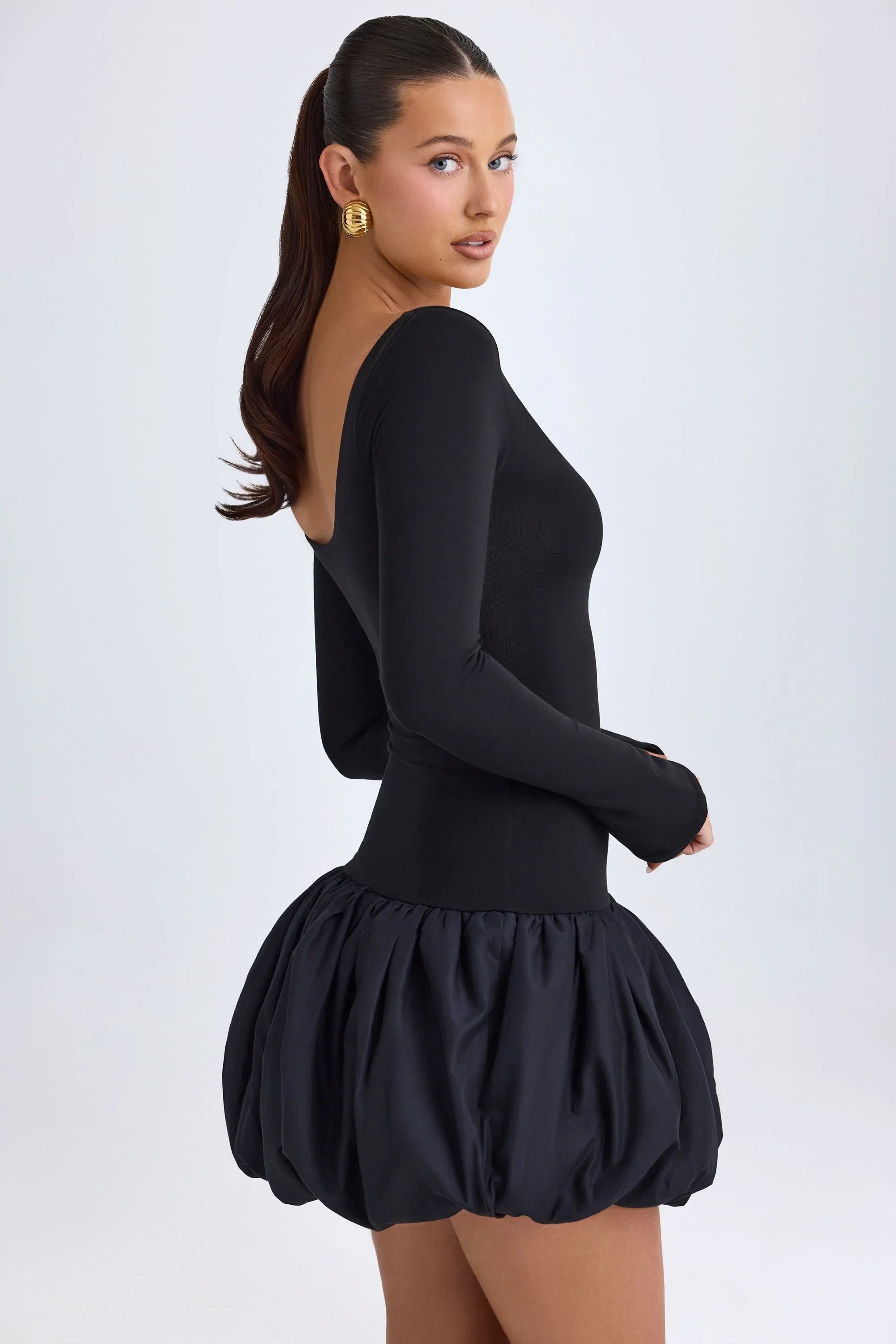 Timeless, elevated, undeniably chic. Perfect for dressy dinner plans or evening events, the Delphi mini dress is designed with a drop-waist stretch jersey bodice made with TENCEL™ Modal fibres, derived from controlled or certified wood sources, and falls to a voluminous bubble-hem skirt. It’s framed with a classic scoop neckline and fitted long sleeves for a timeless look.