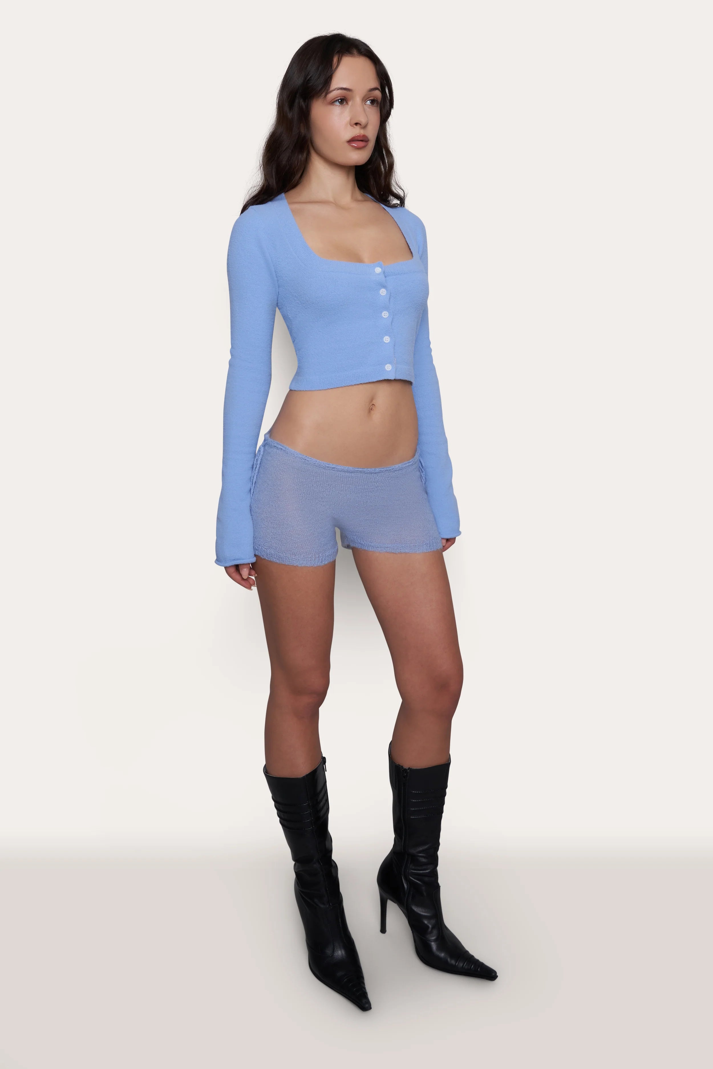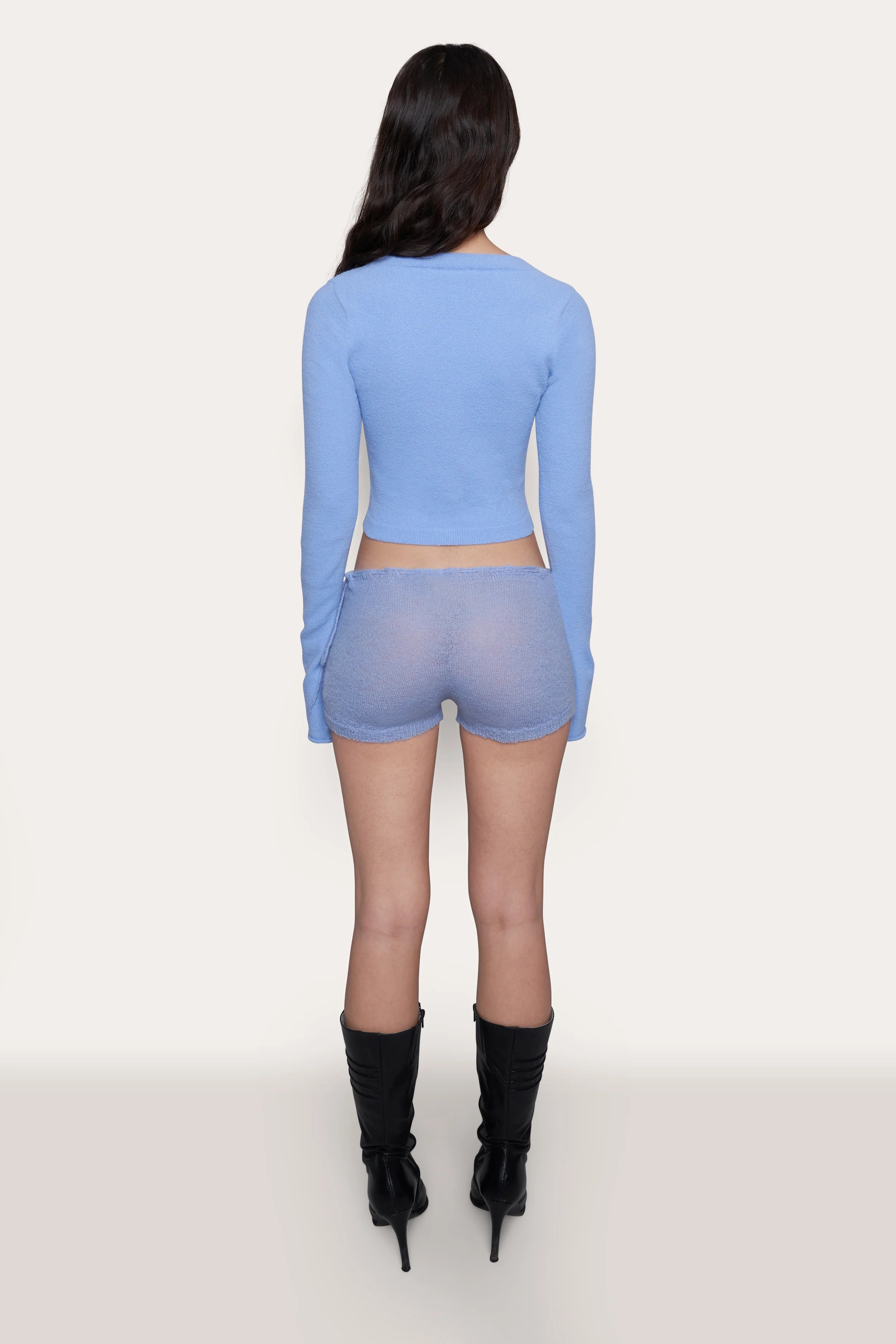 Think '90s. done better. That's our Sweet Knit Scoop Cardigan. the perfect cropped style to wear on its own or layered. Knit to a fuzzy finish. it's super soft – try pairing it with the matching Sweet Knit Mini Skirt for the ultimate cozy fit.