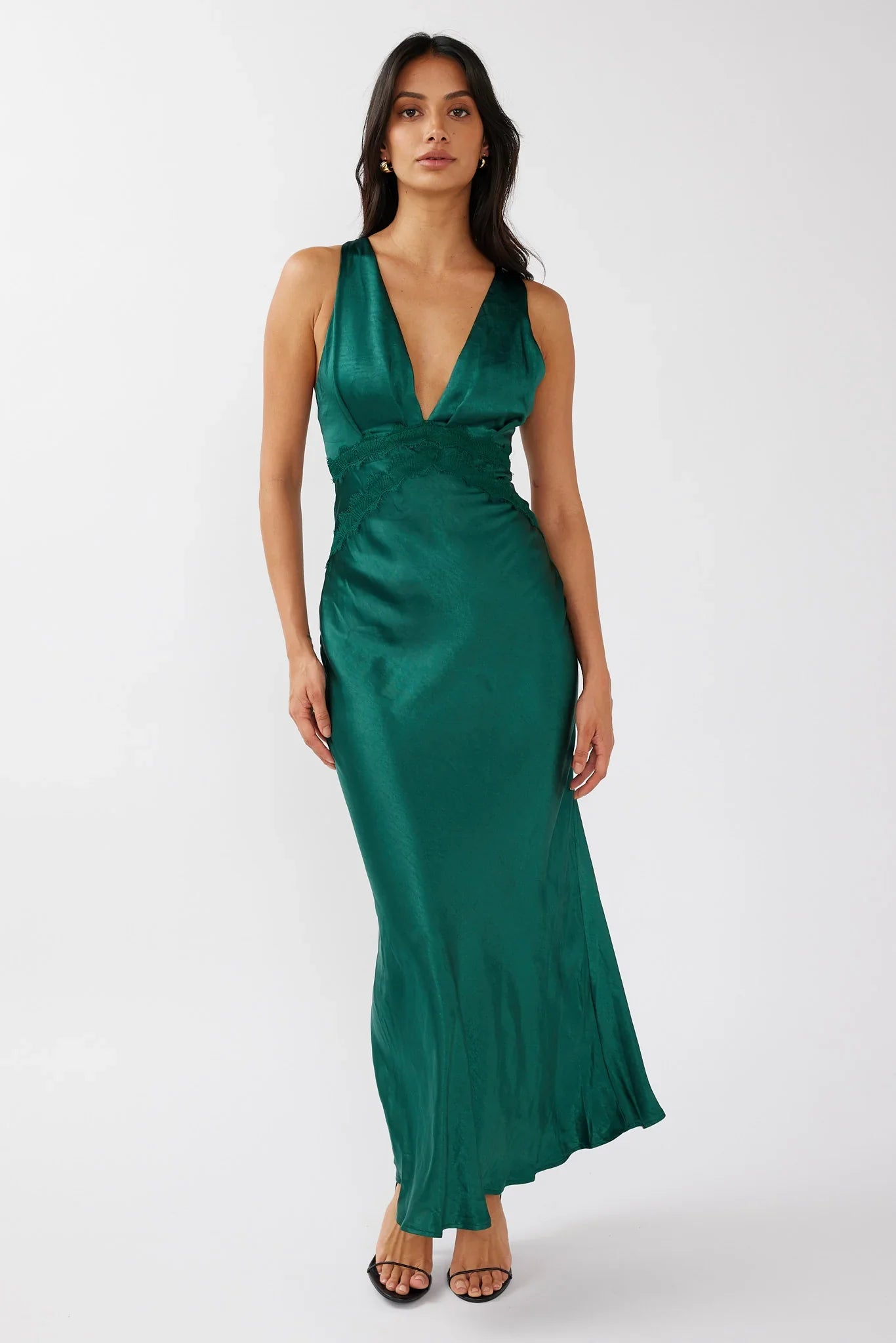 Steal the limelight in our stunning Theriz maxi dress. Featuring a satin fabric with a delicate lace trim, it's perfect for a big birthday celebration or gala event! Team it with silver heels and a satin clutch for an unforgettable look.